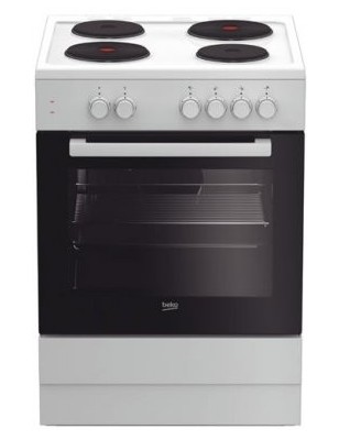 Cuisinire Electrique 60*60cm, statique, 2 rapides, 2 norm., Gril 1500w , blanc Beko