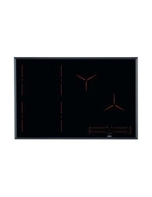 Taque induction 80 cm, PureBlack, 4 zones, DirekTouch, FlexiBridge, H²H, bords biseaut Aeg