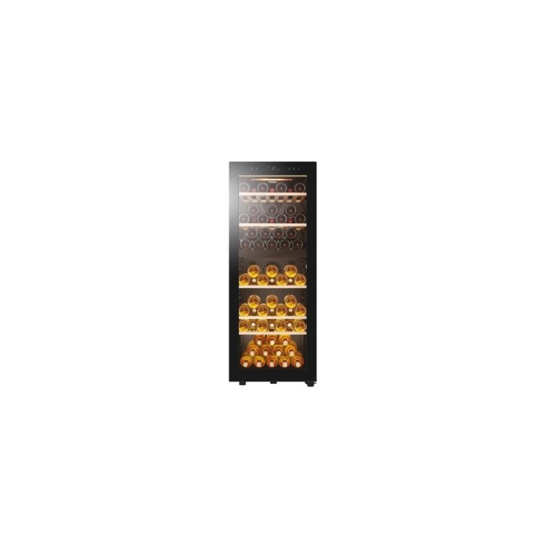 Cave à vin 79 bouteilles - Porte en verre - 5-20°C - étagères en bois - double zone -Haier