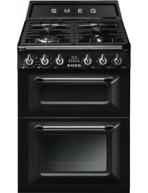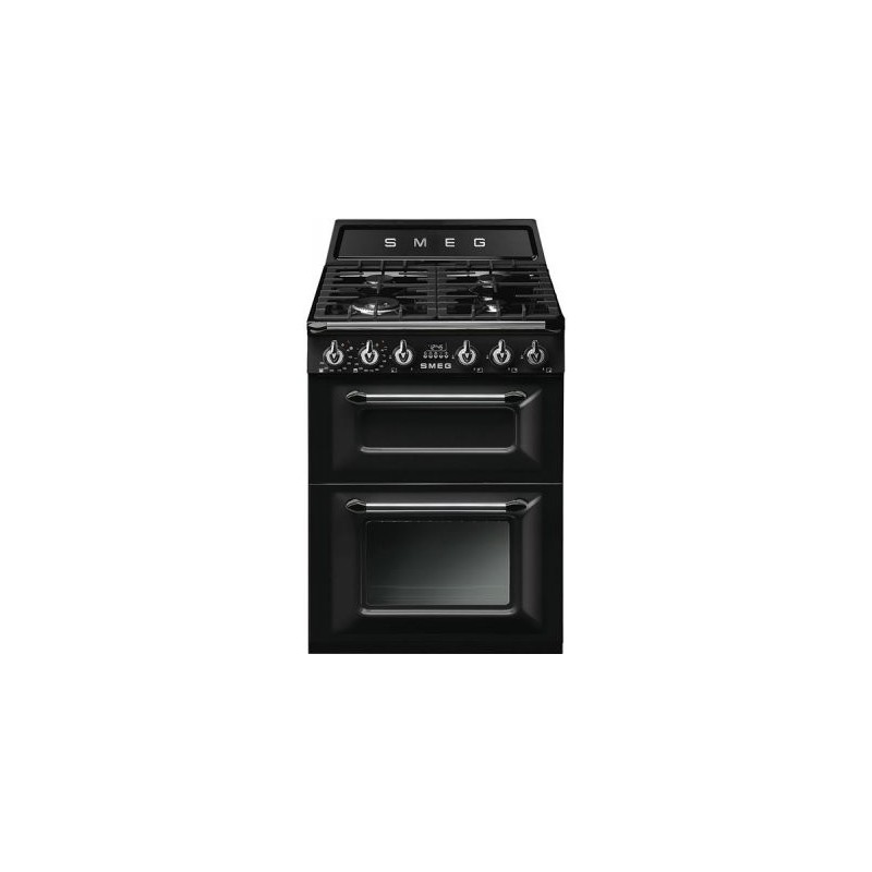 Cuisinière-60x60 cm-Gaz-4 zones de cuisson-2 cavité(s)-Nettoyage manuel-Noir