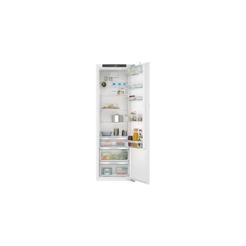 Réfrigérateur - intégrable IQ500 Réfrigérateur une porte - 177,5 cm Classe D, 34 dB, tiroir hyperFresh / tiroir <0°C> / freshBox, LED display, éclairage LED, support bouteilles chromé, 310 l, charnières pantographes softClose, hauteur 177,20 cm D