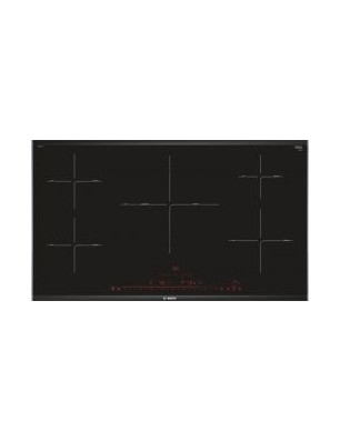 Table de cuisson Serie 8 Induction 90 cm, PowerInduction, 5 zones, triple PowerZone 4,4 kW, DirectSelect Premium avec 17 positions de réglage, PerfectFry, Power Boost toutes zones, 3 timers, Comfort Profile, 11.100 W Facette inox