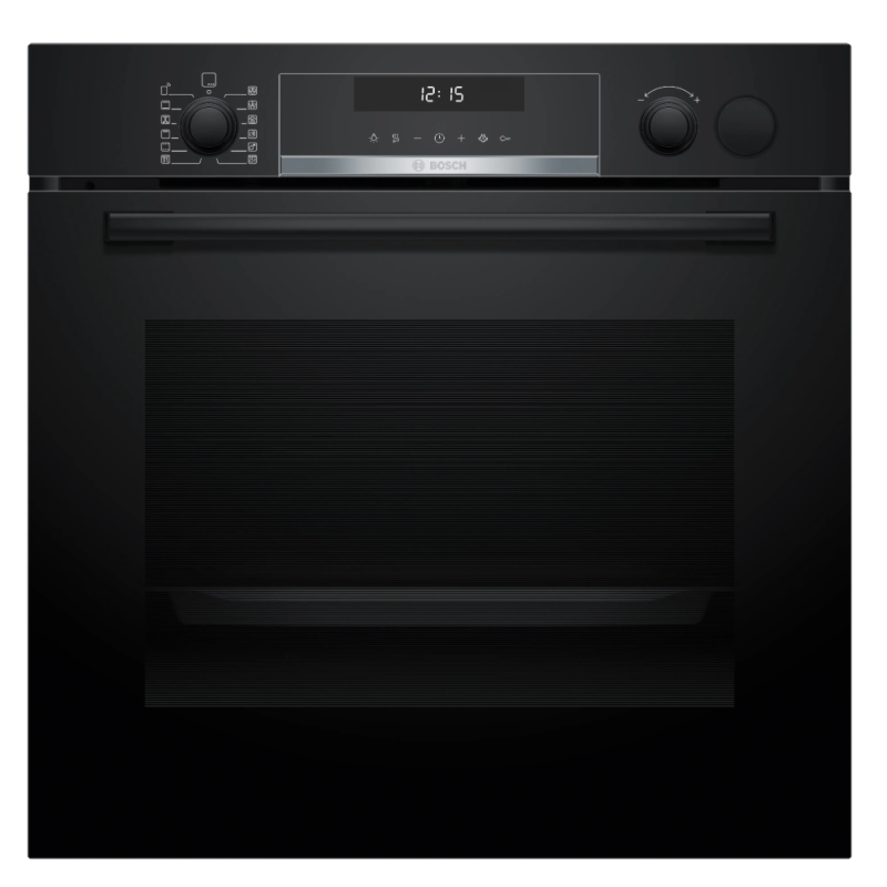 Four Serie 6 Multifonction-ajout vapeur 60 cm, Classe A+, 12 modes de cuisson, Added Steam, Pyrolyse, Home Connect, display blanc, PerfectRoast, SoftMove, noir, AirFry acc. Noir A+