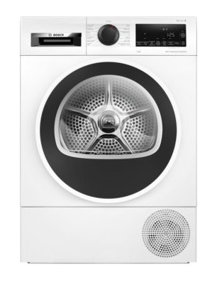 Sèche-linge Serie 6 Pose-libre Classe C, 9,0 kg, Self Cleaning Condenser, reverse, set d'évacuation d'eau, grand display LED avec touches tactiles, éclairage tambour, 61 dB, Line 1, white-black grey, Porte vitrée Blanc C