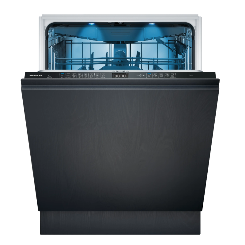 Lave-vaisselle IQ500 Full intég. - 60 x 81,5 - 87,5 cm Classe B, Home Connect, 8 progr, 5 options, 81,50 cm, Zeolith®/ échangeur thermique, cuve inox, 9,0 l, 40 dB, tiroir à couverts, panier Max Flex, Glass zone, Rackmatic 3, display LED direct select, sideLight, charnières Vario, emotionLight bleu B