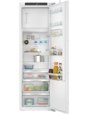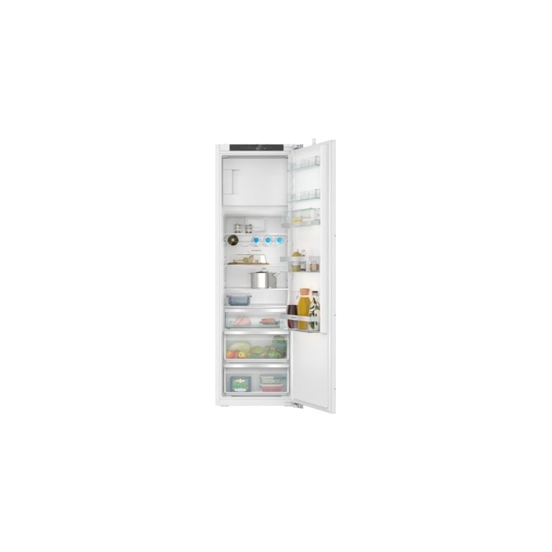 Réfrigérateur - intégrable IQ500 Réfrigérateur une porte - 177,5 cm Classe D, 34 dB, compartiment congélation, tiroir hyperFresh / tiroir <0°C> / freshBox, LED display, éclairage LED, support bouteilles chromé, 246 l, 34 l, charnières pantographes softClose, hauteur 177,20 cm D