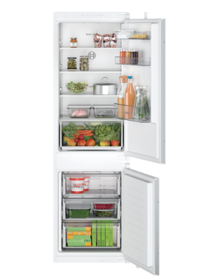 Réfrigérateur - intégrable Serie 2 Bottom-freezer - 177,5 cm NoFrost, Classe E, 35 dB, Multibox, LED display, éclairage LED, 184 l, 76 l, charnières à glissières, hauteur 177,20 cm E