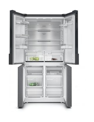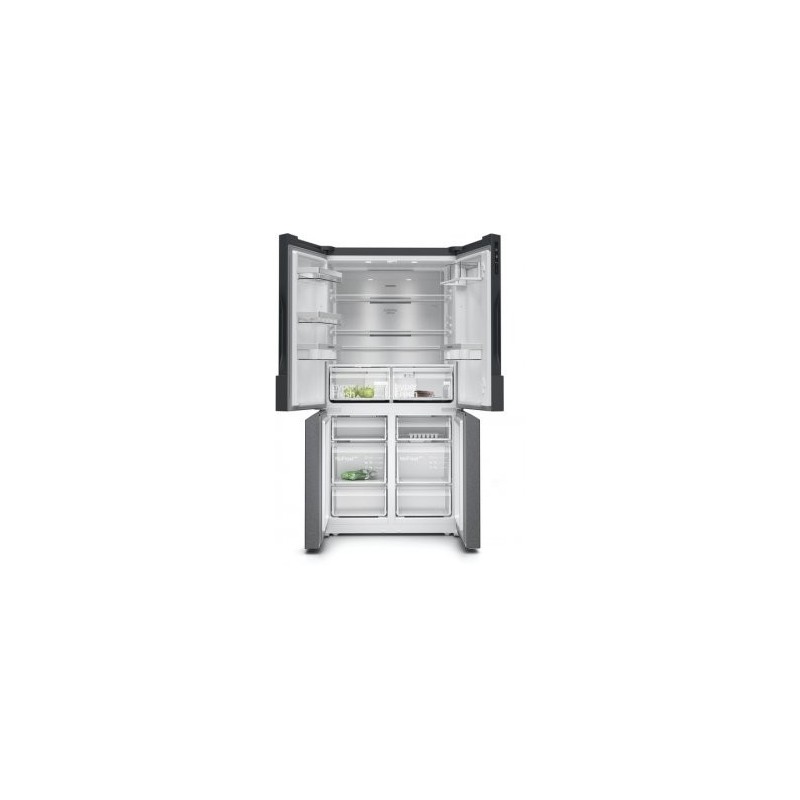 Réfrigérateur - pose-libre IQ300 French Door noFrost Total noFrost, Classe E, 38 dB, Home Connect, hyperFresh, display LED, in door, éclairage LED, 405 l, 200 l, portes acier noir brossé AntiFingerprint, poignée intégrée, 1 ice cube tray, hauteur 183,00 cm Portes acier noir brossé AntiFingerprint E