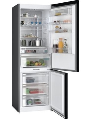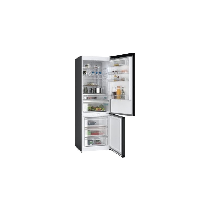 Réfrigérateur - pose-libre IQ500 Combi-bottom noFrost Total noFrost, Classe C, 35 dB, Home Connect, hyperFresh, display LED, in door, LED à allumage progressif (SoftStart), Freezer Light, support bouteilles chromé, 311 l, 129 l, portes acier noir brossé AntiFingerprint, poignée intégrée, 1 ice cube tray, hauteur 203,00 cm Portes acier noir brossé AntiFingerprint C