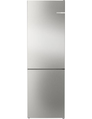 Réfrigérateur - pose-libre Serie 4 Bottom-Freezer NoFrost NoFrost, Classe B, 33 dB, LED à allumage progressif (SoftStart), support bouteilles chromé, 218 l, 103 l, portes acier brossé AntiFingerprint, poignée intégrée, 1 ice cube tray, hauteur 186,00 cm Portes acier brossé AntiFingerprint B