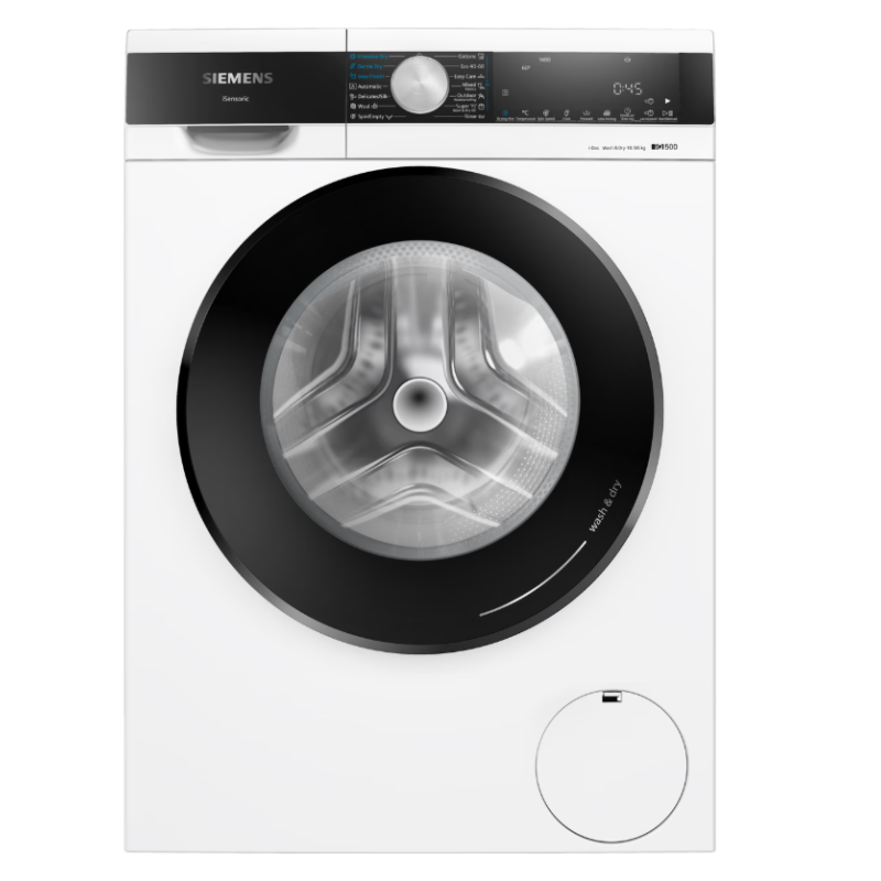 Lavante-sèchante IQ500 Pose-libre Classe D, Classe A, 6,0 kg, 10,5 kg, 1.400 tr/min, i-Dos, Antitaches, powerSpeed, grand display LED avec touches tactiles, waveDrum, Aquastop, 70 dB, Full/MK, black-black Blanc D/A