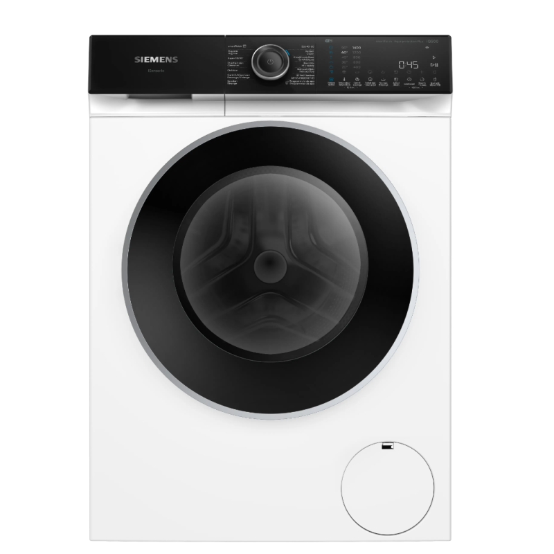 Lave-linge IQ500 Pose-libre Classe A, -20%, 9,0 kg, 1.400 tr/min, i-Dos, smartFinish, Home connect, powerSpeed, grand display LED avec touches tactiles, éclairage tambour, waveDrum, Aquastop, 70 dB, moteur BLDC avec 10 ans de garantie moteur, Full 1, liquid-chrome matt, black Blanc A-20%