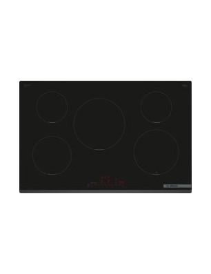 Table de cuisson Serie 6 Induction 80 cm, PowerInduction, 5 zones, DirectSelect avec 17 positions de réglage, PerfectFry Plus, Power Boost toutes zones, 2 timers (alternative), Home Connect - Hood Control, Smart Hood Automatic, biseau avant, 7.400 W Sans cadre, devant biseauté