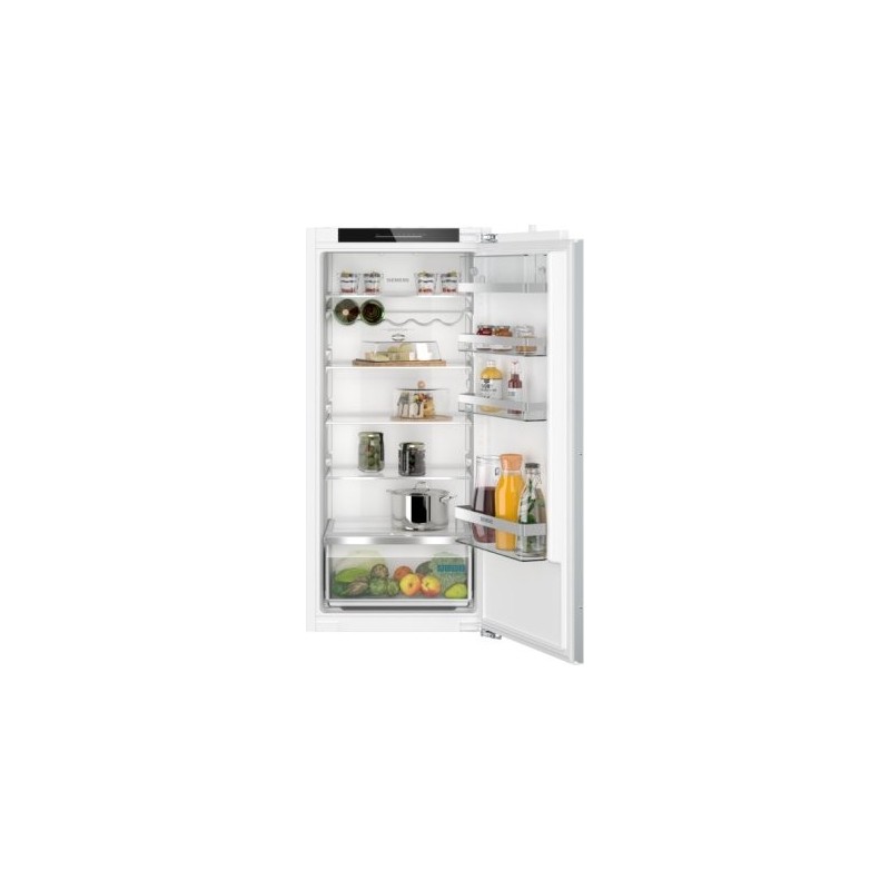 Réfrigérateur - intégrable IQ500 Réfrigérateur une porte - 122,5 cm Classe D, 28 dB, hyperFresh, LED display, éclairage LED, support bouteilles chromé, 204 l, charnières pantographes softClose, hauteur 122,10 cm D