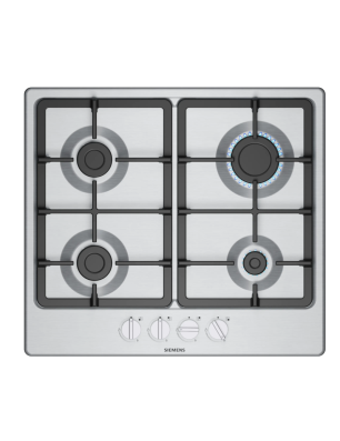 Table de cuisson IQ300 Gaz 60 cm, inox, 4 brûleurs, boutons rotatifs, fonte avec pieds en caoutchouc, lavable au lave-vaisselle Inox