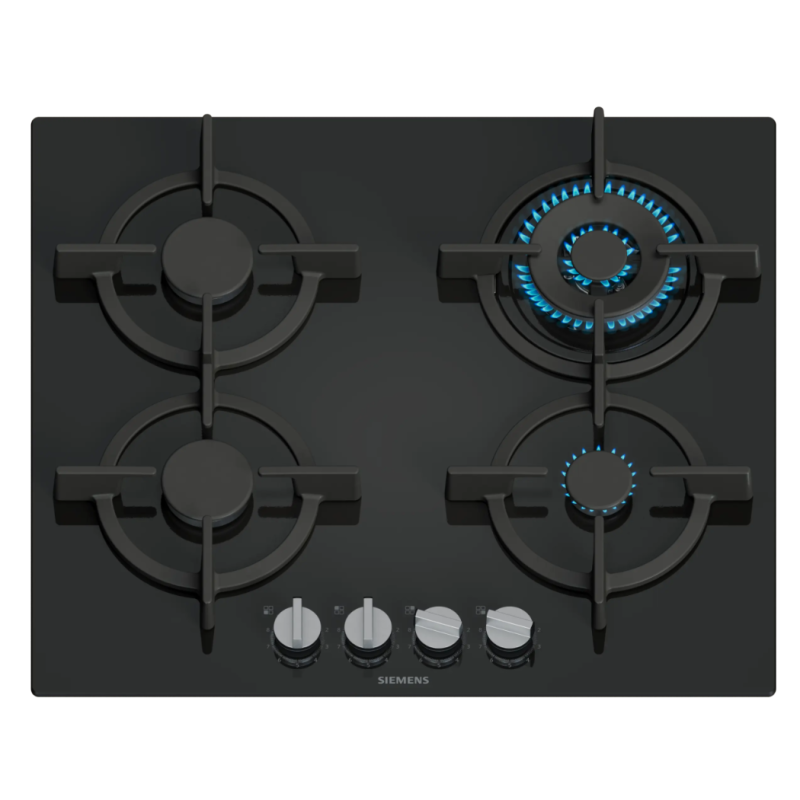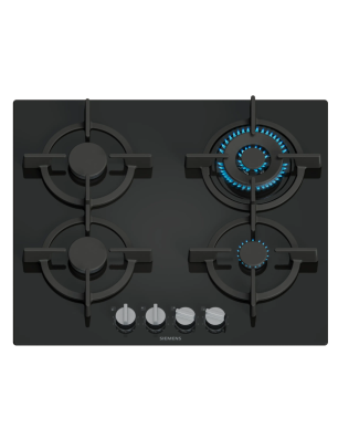 Table de cuisson IQ500 Gaz 60 cm, verre trempé, boutons rotatifs détachable, stepFlame® Technology, fonte avec pieds en caoutchouc, lavable au lave-vaisselle, noir, à semi-fleur de plan Noir