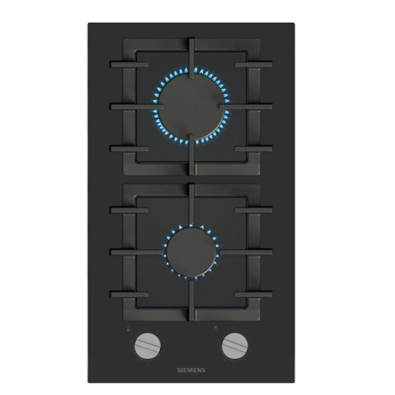 Table de cuisson IQ700 Domino 30 cm, vitrocéramique, boutons rotatifs détachable, stepFlame® Technology, fonte (individuel) avec pieds en caoutchouc, lavable au lave-vaisselle, noir, rofils sur les côtés et biseaux avant/arrière Facette inox