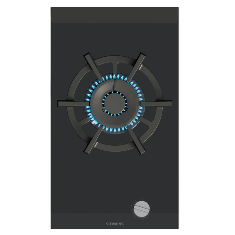 Table de cuisson IQ700 Domino 30 cm, vitrocéramique, boutons rotatifs détachable, stepFlame® Technology, fonte avec pieds en caoutchouc, lavable au lave-vaisselle, noir, rofils sur les côtés et biseaux avant/arrière Facette inox