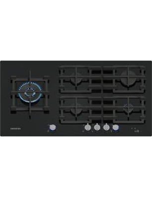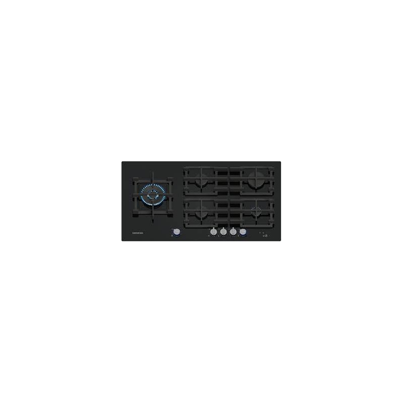 Table de cuisson IQ700 Gaz 90 cm, verre trempé, 5 brûleurs, powerWok gauche 6,0 kW, boutons lumineux rotatifs détachable, stepFlame® Technology, fonte (individuel) avec pieds en caoutchouc, lavable au lave-vaisselle, Home Connect - cookConnect, intelligent hood automatic, Affichage digital, 1 timer, noir, à semi-fleur de plan Noir
