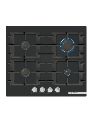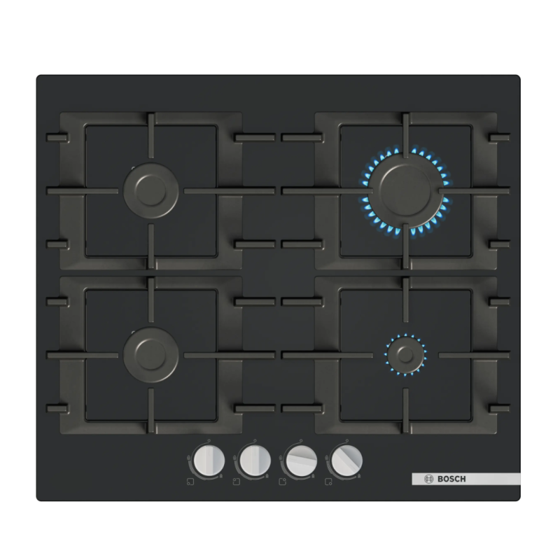 Table de cuisson Serie 4 Gaz 60 cm, verre trempé, boutons rotatifs, fonte (individuel)