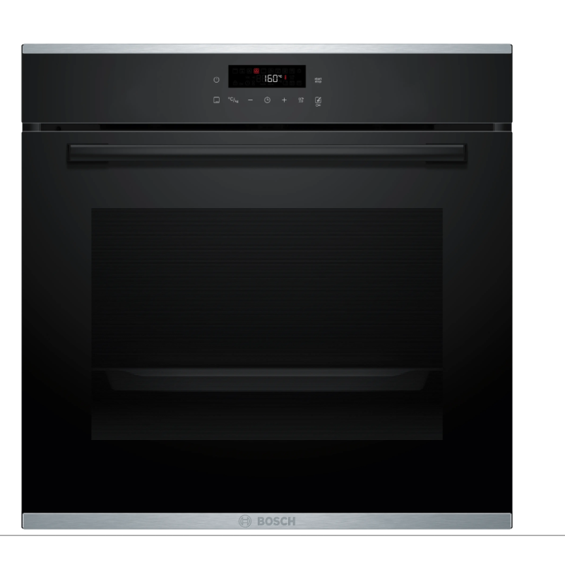 Four Serie 4 Multifonction 60 cm, Classe A+, 7 modes de cuisson, Pyrolyse, display rouge, rail télesc.1niv., SoftMove, noir, AirFry acc. Noir A+