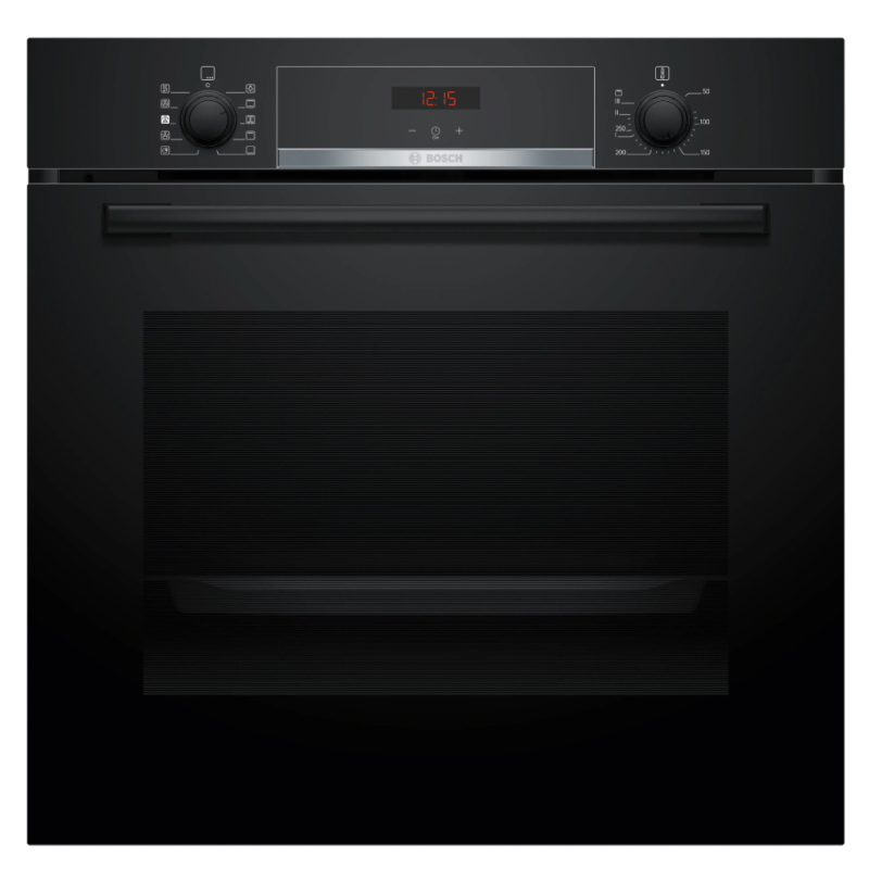 Four Serie 4 Multifonction 60 cm, Classe A+, 8 modes de cuisson, Added Steam, EcoClean, display rouge, rail télesc.1niv., noir Noir A+