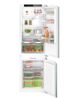 Réfrigérateur - intégrable Serie 6 Bottom-freezer - 177,5 cm NoFrost, Classe B, 33 dB, tiroir VitaFresh / tiroir <0°C>, LED display, éclairage LED, Freezer Light, support bouteilles chromé, 184 l, 76 l, charnières pantographes SoftClose, hauteur 177,20 cm B