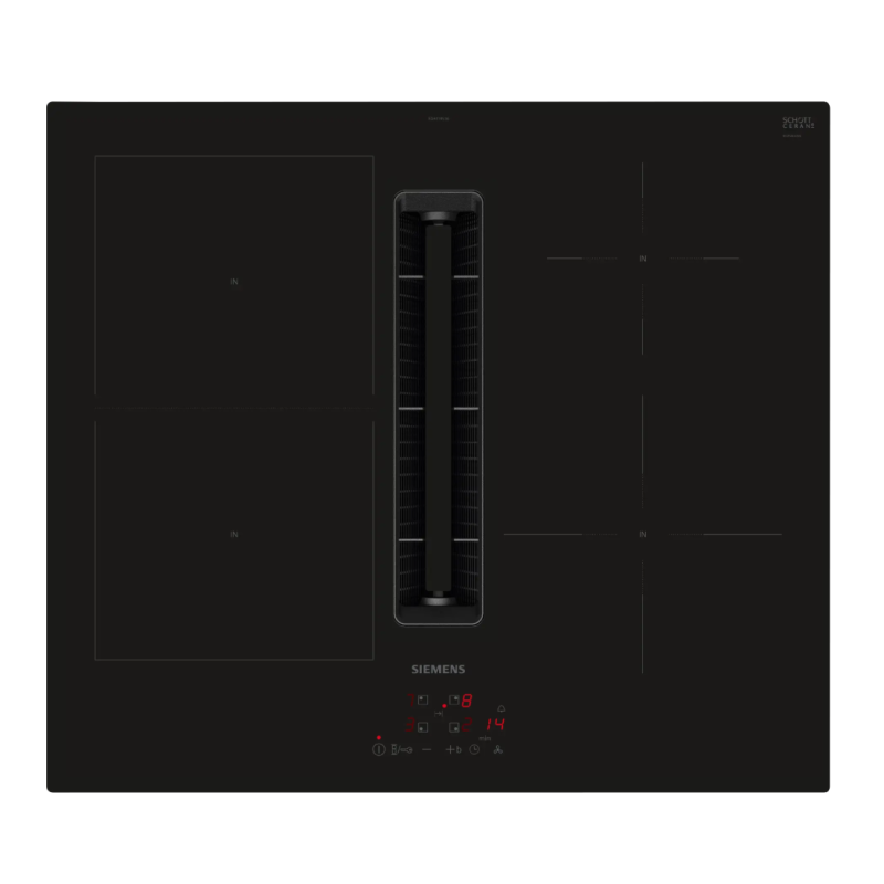 Table de cuisson IQ300 Induction-ventilation intégrée 60 cm, combiInduction, 4 zones, 1 combiZone, touchControl avec 17 positions de réglage, powerBoost toutes zones, 2 timers, iQdrive, 3 niveaux + 1 intensif, 500 / 622 m3/h, 69 dB, sans cadre, 7.400 W, classe B Sans cadre B