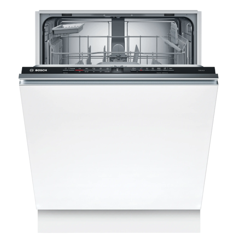 Lave-vaisselle Serie 2 Full intég. - 60 x 81,5 - 87,5 cm Classe E, Home Connect, 5 progr, 5 options, 81,50 cm, cuve Polinox, 9,5 l, 46 dB, panier standard, LED, InfoLight rouge E