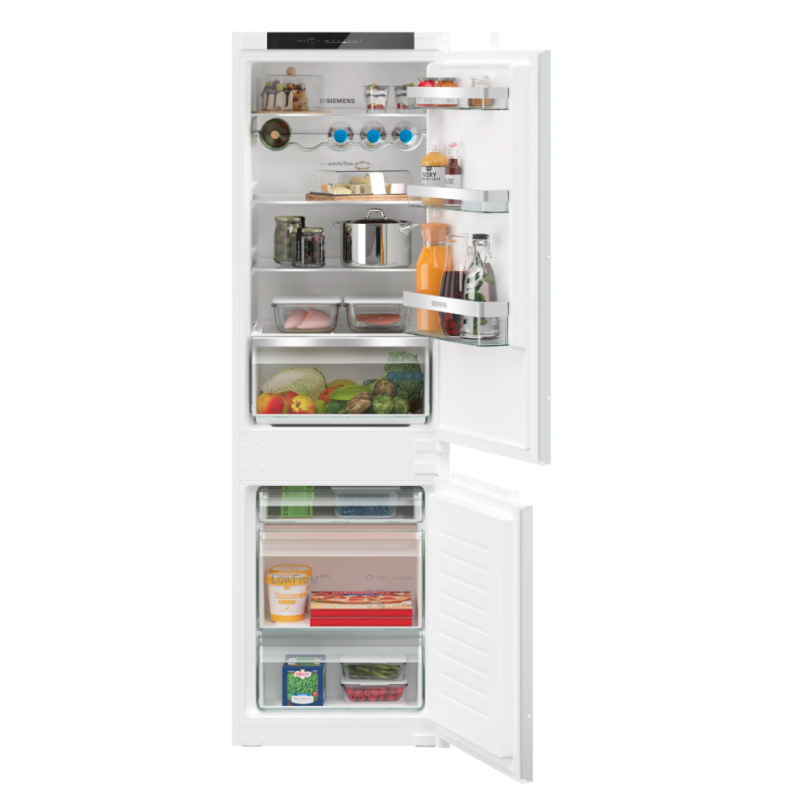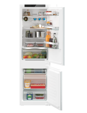 Réfrigérateur - intégrable IQ300 Combi-bottom - 177,5 cm LowFrost, Classe E, 35 dB, hyperFresh, LED display, éclairage LED, support bouteilles chromé, 183 l, 84 l, charnières à glissières, hauteur 177,20 cm E