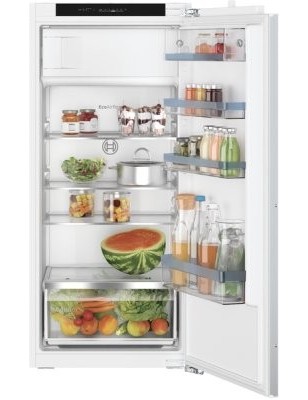Réfrigérateur - intégrable Serie 4 Réfrigérateur une porte - 122,5 cm Classe E, 35 dB, compartiment congélation, Multibox, LED display, éclairage LED, support bouteilles chromé, 172 l, 15 l, charnières plates, hauteur 122,10 cm E
