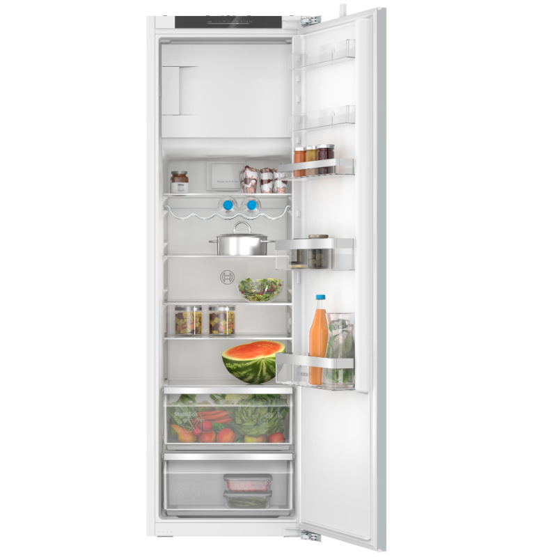 Réfrigérateur - intégrable Serie 4 Réfrigérateur une porte - 177,5 cm Classe E, 35 dB, compartiment congélation, Multibox, LED display, éclairage LED, support bouteilles chromé, 246 l, 34 l, charnières plates, hauteur 177,20 cm E