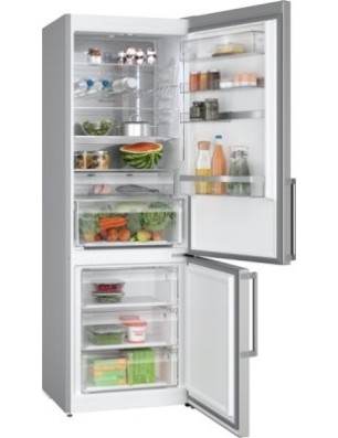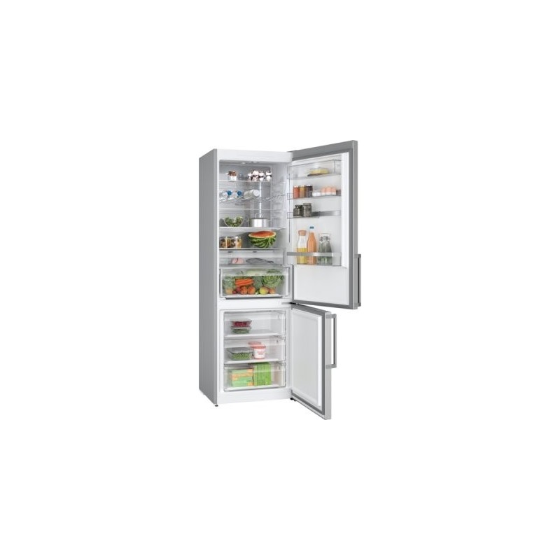 Réfrigérateur - pose-libre Serie 6 Bottom-Freezer NoFrost NoFrost, Classe B, 35 dB, display LED, in door, LED à allumage progressif (SoftStart), support bouteilles chromé, 311 l, 129 l, portes acier brossé AntiFingerprint, poignée extérieure, 1 ice cube tray, hauteur 203,00 cm Portes acier brossé AntiFingerprint B